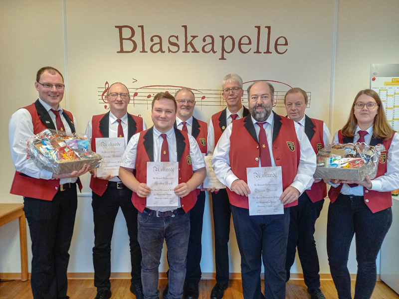 Einige Mitglieder wurden in diesem Jahr für ihr langes Mitwirken in der Blaskapelle geehrt.