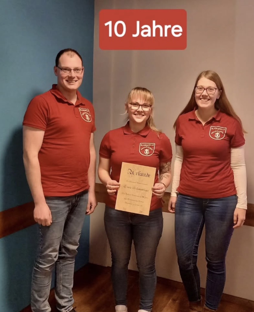 Geehrt wurde Luzie Schwerdtfeger für ihre 10-jährige Mitgliedschaft in der Kapelle.